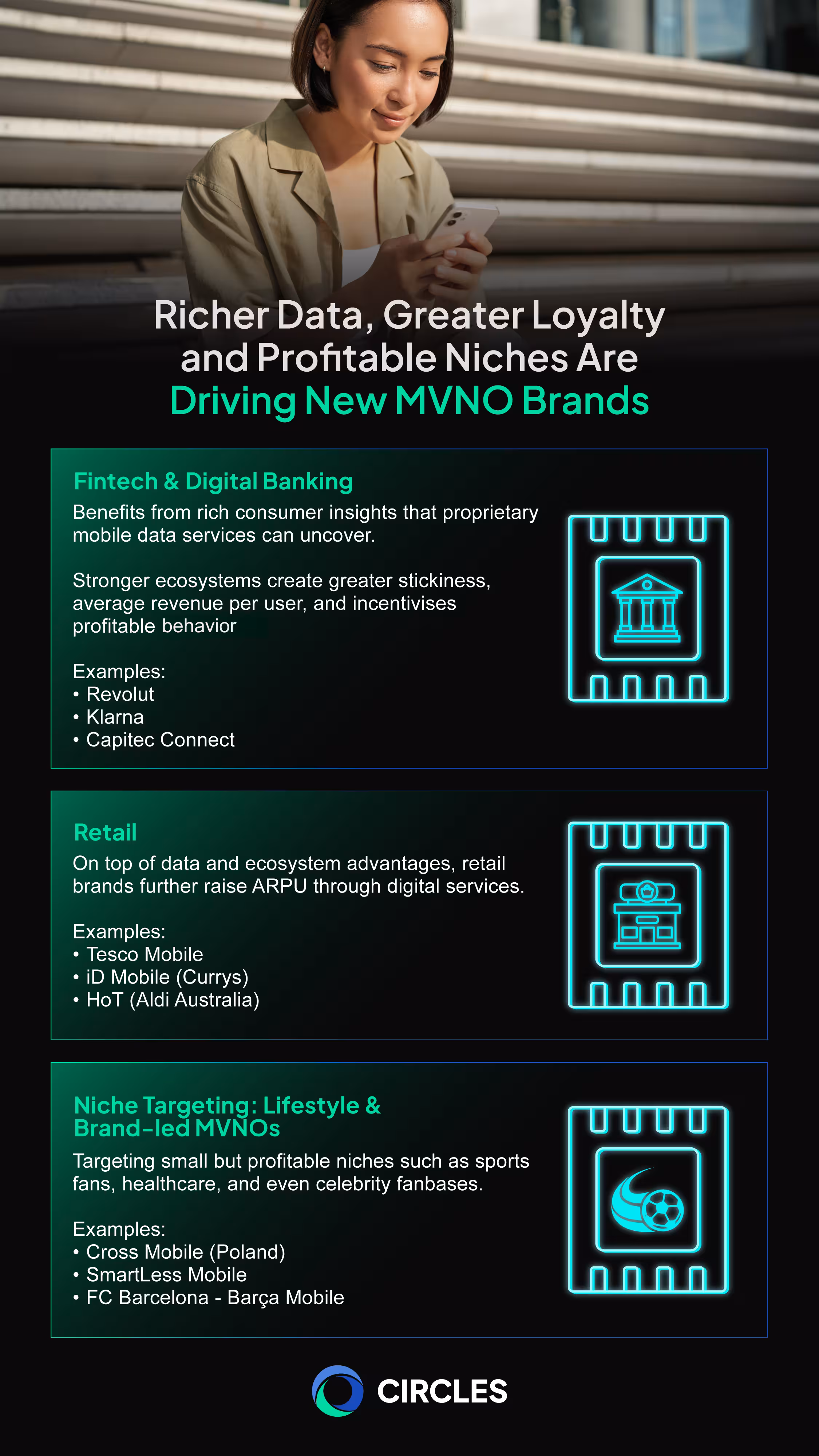 In addition to the lower barriers to entry, many non-telco companies are drawn to offering MVNO services by the potential returns from targeting profitable but niche audiences and the insights gained from deeper and richer data that only mobile services can provide.